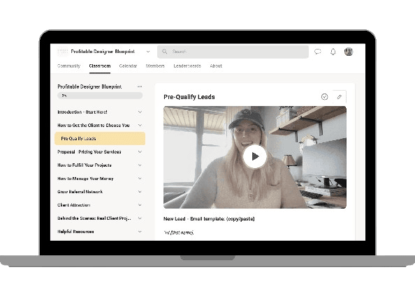 Gain access to comprehensive, step-by-step training classes that guide you through every aspect of building and growing a successful interior design business.