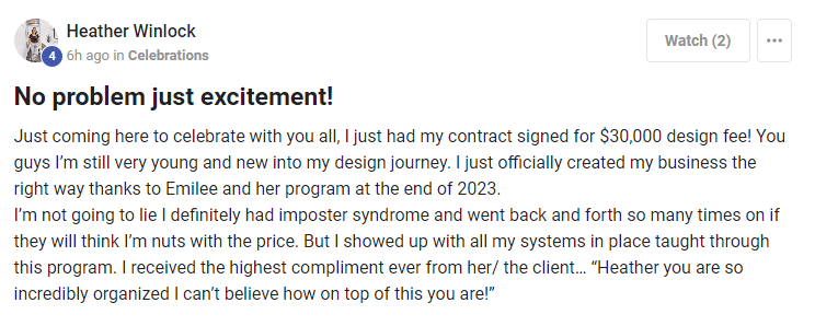 Join our private support community and connect with fellow designers for advice, encouragement, and support. Whether you're facing challenges or celebrating successes, our community is here to cheer you on every step of the way.